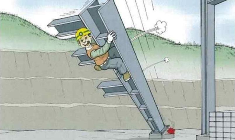 ![]() | 예방대책 ● 철골을 조립하는 경우 철골의 접합부가 충분히 지지되도록 볼트를 체결하는 등 전도 예방 조치 후 작업을 하여야 합니다. |