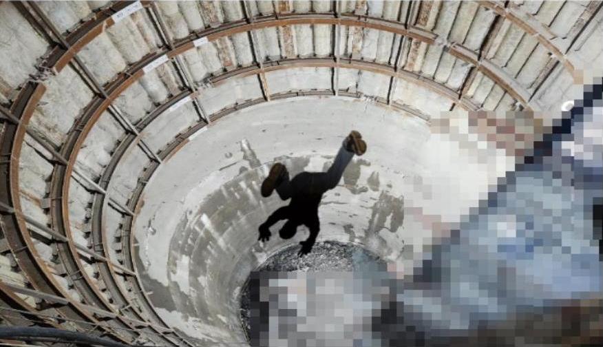 '23년 9월22일(금) 14:15경 경기도 광명시 지하철 역사 건설 현장 지하수직구 상부에서 이동식 크레인 와이어로프를 정비하다 지하수직구 바닥으로 떨어져(19m) 사망