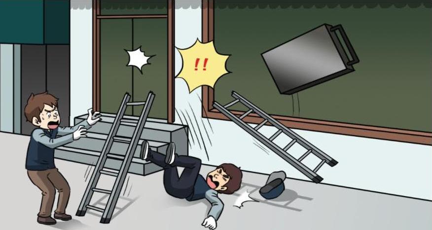 ![]() | 예방대책 ● 높이 2m 이상의 고소 작업 시에는 안전 하게 작업할 수 있는 높이의 비계를 조립 설치하거나 고소작업대를 사용 하여 작업을 합니다. |