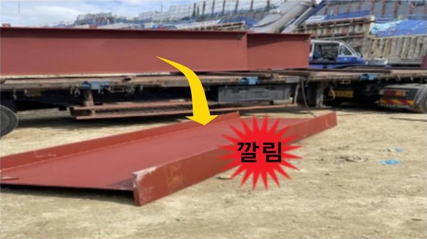 ![]() | 예방대책 ● 량물 취급작업을 하는 경우 근로자의 위험을 방지하기 위하여 전도, 추락, 협착 위험을 예방할수 있는 안전대책이 포함된 작업계획서를 작성하고 그 계획에 따라 작업합니다. |