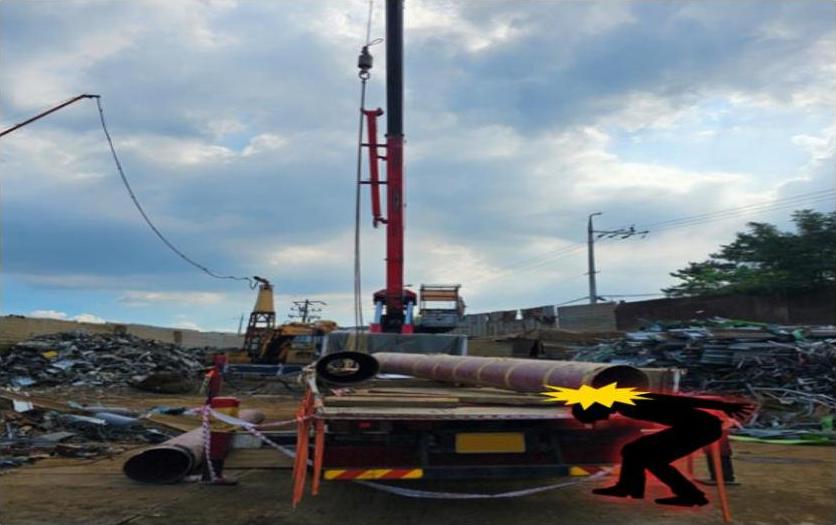 2023년 8월 2일 11:03경 광주 북구 소재 고물상에서 도시철도 공사 현장에서 반출한 폐관을 크레인으로 하역하던 중 떨어지는 폐관에 재해자가 맞아 사망