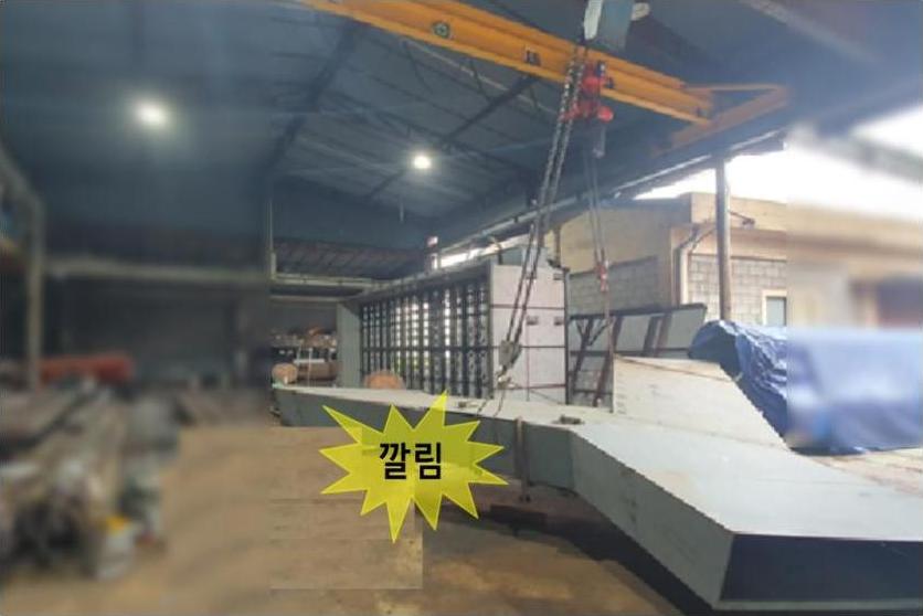 2023년 7월 14일 13:19경 인천 서구 소재 산업용기계 제조 공장에서 천장크레인으로 덕트를 뒤집던 중 연결된 체인이 이탈하며 떨어지는 덕트에 깔려 사망