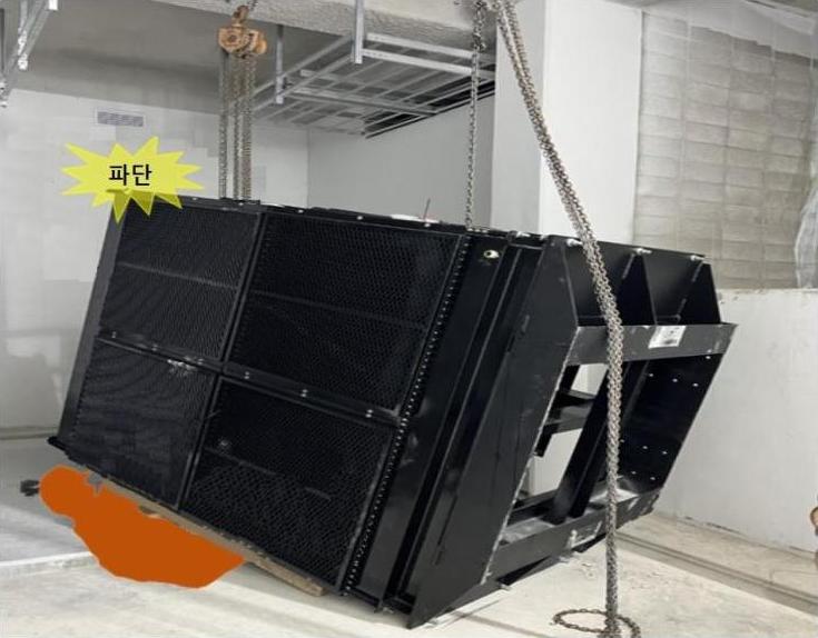 2023년 6월 7일 16:05경 경기 고양시 소재 아파트 발전기 설치현장에서 발전기 라디에이터 (2톤)를 도르래로 전기실에 인양하던 중 연결 부위가 파단되며 떨어지는 라디에이터에 맞아 사망