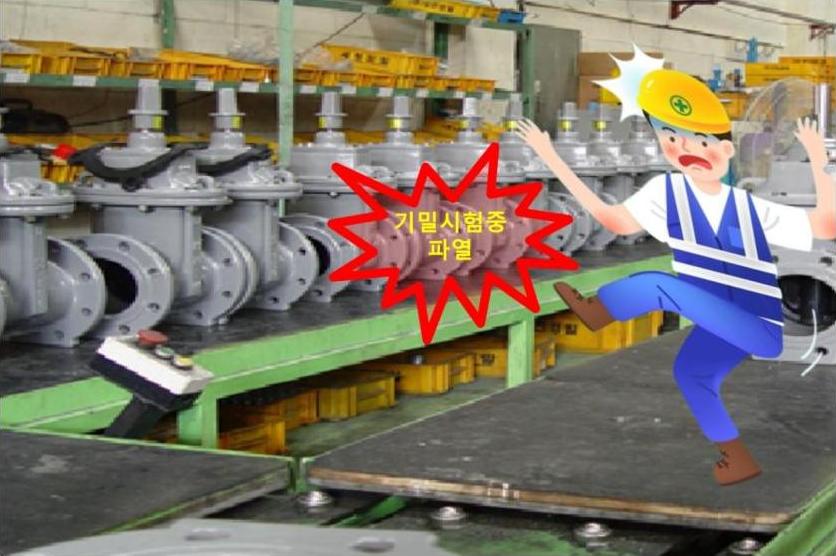 2023년 5월 18일 14:55경 부산 강서구 소재 소화용품 제조 공장에서 밸브 누출 검사를 위해 밸브에 질소 주입 중 압력에 의해 날아온 부품에 맞아 사망