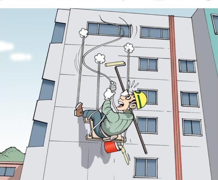 ![]() | 예방대책 ● 구명줄을 설치하고 구명줄에 안전줄을 체결하도록 합니다. ● 달비계 작업대의 4개 모서리에 로프를 매달아 작업대가 뒤집히지 않도록 합니다. |