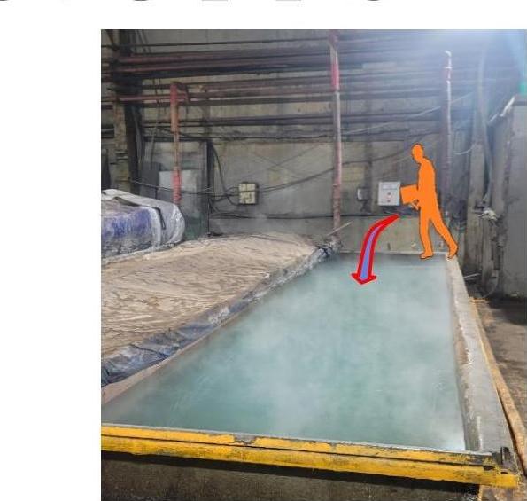 2023년 5월 1일 13:21 경 경남 양산시 소재 배관 도장공장에서 온탕조 수위 조절을 위해 빠져 온탕조 위에 올라가 이동하던 중 온탕조로 화상 치료 중 5월 9일 사망