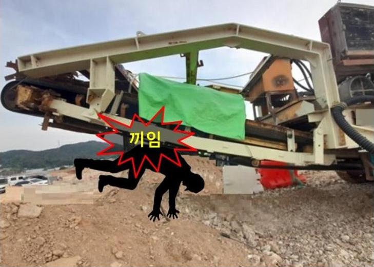 2023년 5월 8일 14:50경 대전 서구 소재 산업단지 부지 조성 공사현장에서 쇄석기* 운전원이 쇄석기 작동 상태 확인 중 컨베이어 벨트 하부 롤러에 끼여 사망 * 쇄석기: 도로 공사현장 등에서 채굴한 바위 등을 파쇄하여 모래나 자갈을 생산하는 기계