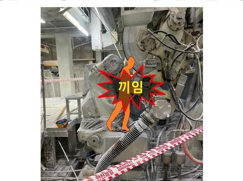 2023년 5월 6일 17:08경 경남 진주시 소재 제지공장에서 가동 중인 코팅설비의 오염 제거 작업 중 프레임과 움직이는 실린더 사이에 끼여 병원으로 이송하였으나 치료 중 5월 10일 사망