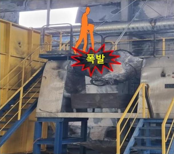2023년 4월 3일 11:07 경 경북 경주시 소재 철강제품 제조 공장에서 혼합기 상부에서 작업자가 혼합기 내부에 붙어 있는 원료를 막대로 긁어내던 중 폭발이 발생하여 병원에서 치료 중 4월 19일 사망 > 중대재해사이렌 - 2023년 까지