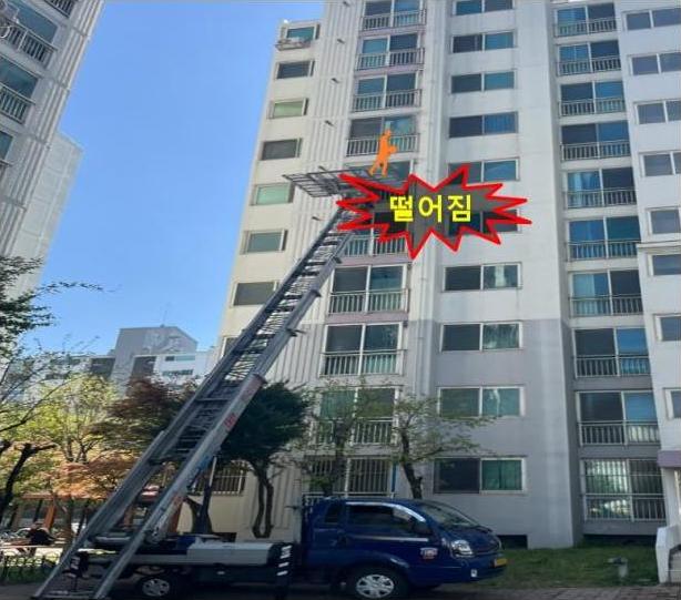4월 19일 08:00경 경기 시흥시 소재 2023년 아파트 6층에서 이삿짐 운반을 위해 이삿짐 운반용 리프트 운반구에서 베란다 창문 제거 작업 중 14m 아래 바닥으로 떨어져 사망