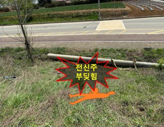 2023년 4월 20일 15:00경 경기 여주시 소재 부지조성 공사현장에서 굴착기로 전신주를 운반 하던 중 잠시 내려놓은 전신주가 경사로를 굴러 떨어지며 재해자가 부딪혀 사망 따라