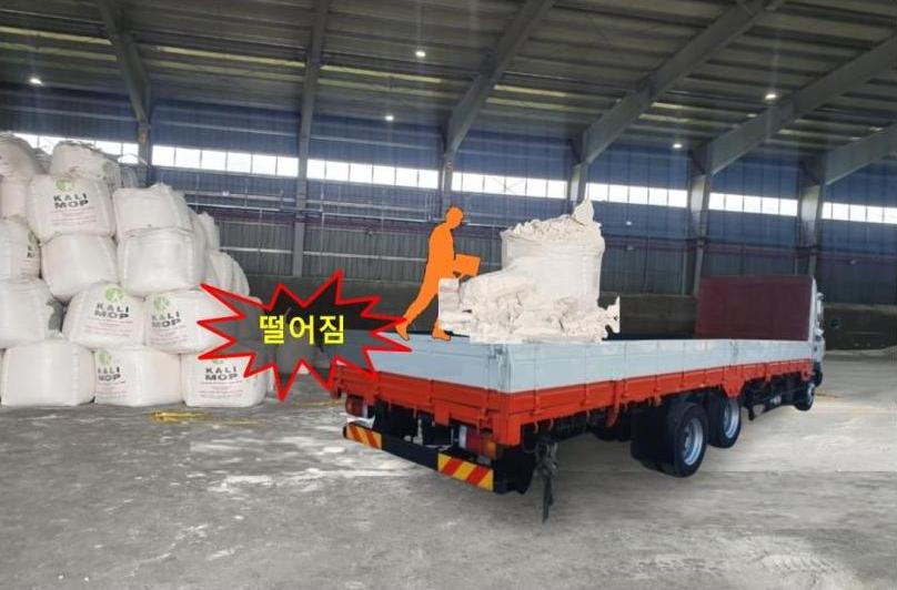 2023년 4월 20일 16:47 경 전남 광양시 소재 창고에서 화물차 적재함의 염화칼륨 포대를 칼로 찢어 개방하던 중 떨어지는 염화칼륨 덩어리 (300kg)에 맞아 화물차 적재함에서 바닥으로 떨어져 사망
