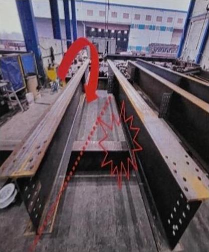 2023년 4월 6일 09:55경 충북 음성군 소재 철구조물 제조 공장에서 천장주행크레인으로 H빔(1)을 인양하던 중 재해자 옆에 적재되어 있던 H빔(2)이 부딪혀 넘어졌고 재해자가 H빔(2)에 깔려 사망