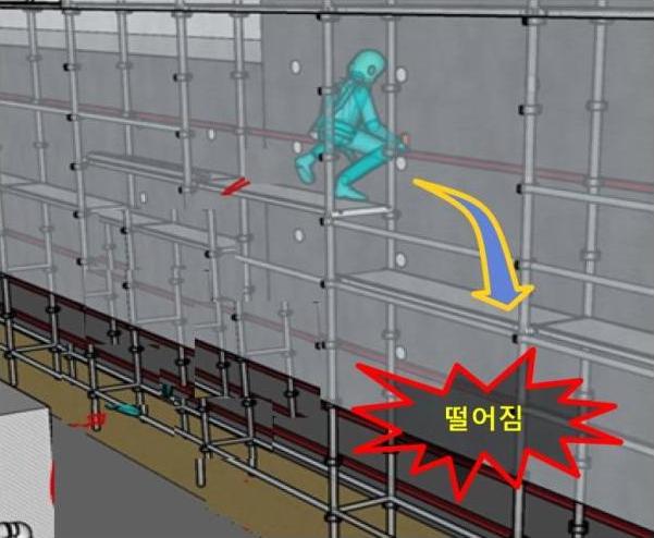 2023년 3월 27일 09:35 경 경남 창원시 소재 오피스텔 공사현장에서 건물 외부 비계에서 * 외벽 견출작업 중 외부비계와 건물 외벽 사이로 떨어져 (19m) 사망 * 견출작업: 노출된 콘크리트 표면을 평탄화하는 작업