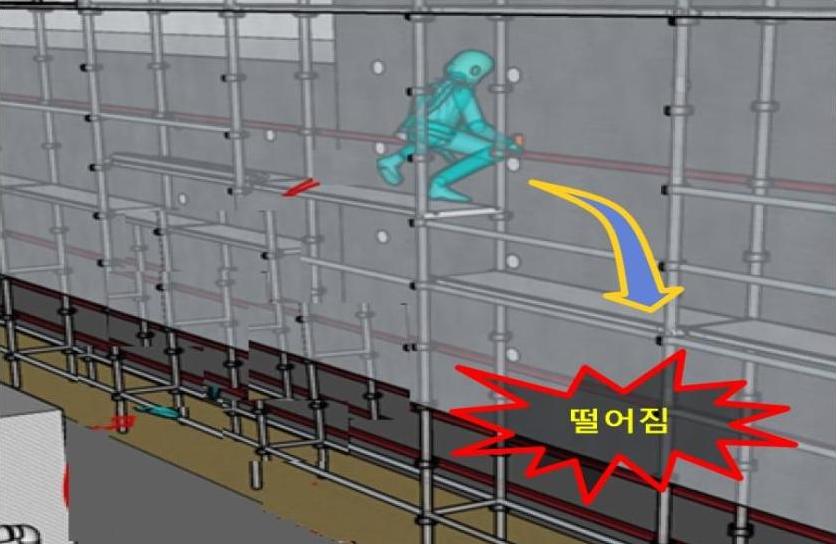 2023년 4월 3일 12:10경 서울 중랑구 소재 근린생활시설 신축공사 현장의 건물 외부비계 작업발판에서 자재를 정리하던 중 외부비계와 외벽 사이로 떨어져(4m) 사망