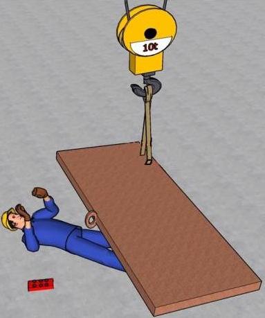 ![]() | 예방대책 ● 작업 반경 내에 근로자의 출입을 통제하여 크레인으로 인양 중인 하물이 작업자의 머리 위로 통과하지 않도록 합니다. ● 반드시 훅 해지장치를 사용하여 인양물이 낙하하지 않도록 합니다. |