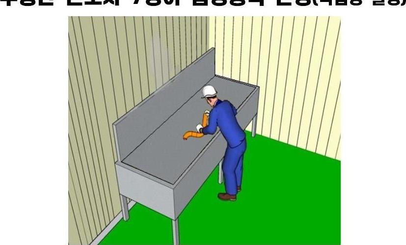 ![]() | 예방대책 ● 근로자를 작업에 배치하기 전에 해당 물질의 유해성 등을 미리 교육하고, 방독마스크를 지급 착용하도록 합니다. ● 국소배기장치를 설치 가동한 후 작업하도록 합니다. |