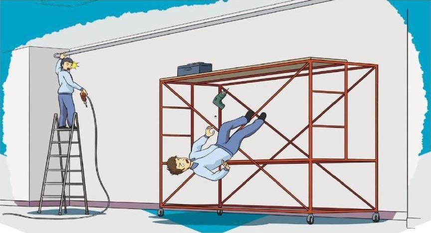 ![]() | 예방대책 ● 이동식 비계 안전난간의 구조 및 설치요건 준수하고 개인보호구 (안전대, 안전모 착용을 철저히 관리감독 합니다. |