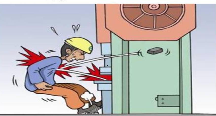 ![]() | 예방대책 ● 안전인증기준, 자율안전점검기준 또는 안전검사기준에 적합하지 않은 프레스(기계기구)는 사용을 철저히 금지 하여야 합니다. |
